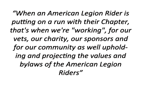 What does this mean to us at this time? When it's an American Legion Riders Post 259 Benefit Ride, we feel it's our responsibility as American Legion Riders to give our best effort to provide a safe ride for the public. Our Officers, Road Captain & Road Guards are always striving to provide a safe professional run that goes as smoothly as possible. Experience is everything to keep the public coming back.